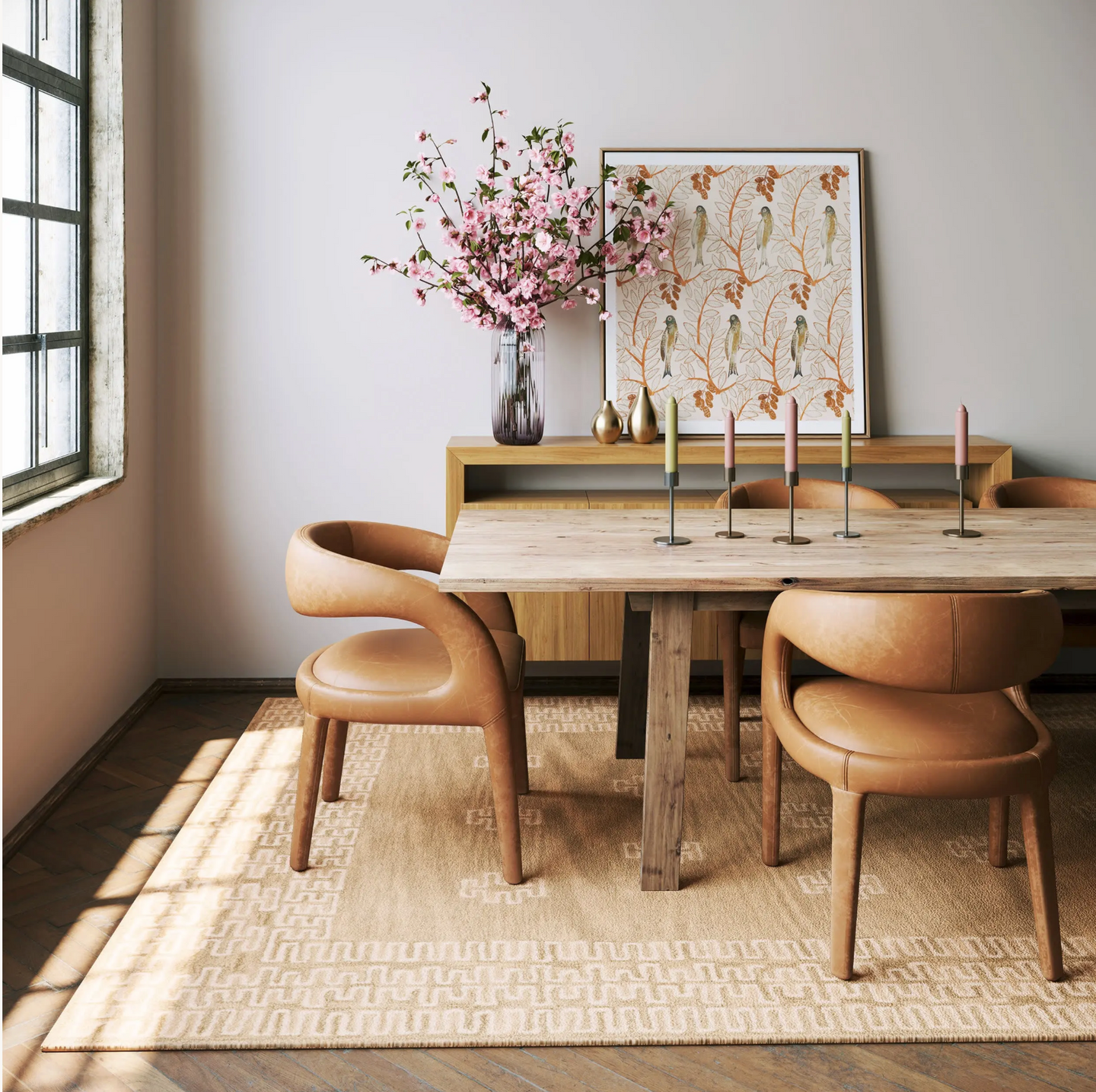 La alfombra Emma, fabricada con lana 100% natural, presenta un elegante tono beige con un patrón de nudos cuadrados en color crema. Su textura suave y resistente es perfecta para cualquier área de tu hogar. Además de su durabilidad, la lana proporciona un excelente aislamiento térmico y acústico, ideal para crear un ambiente cálido y confortable.