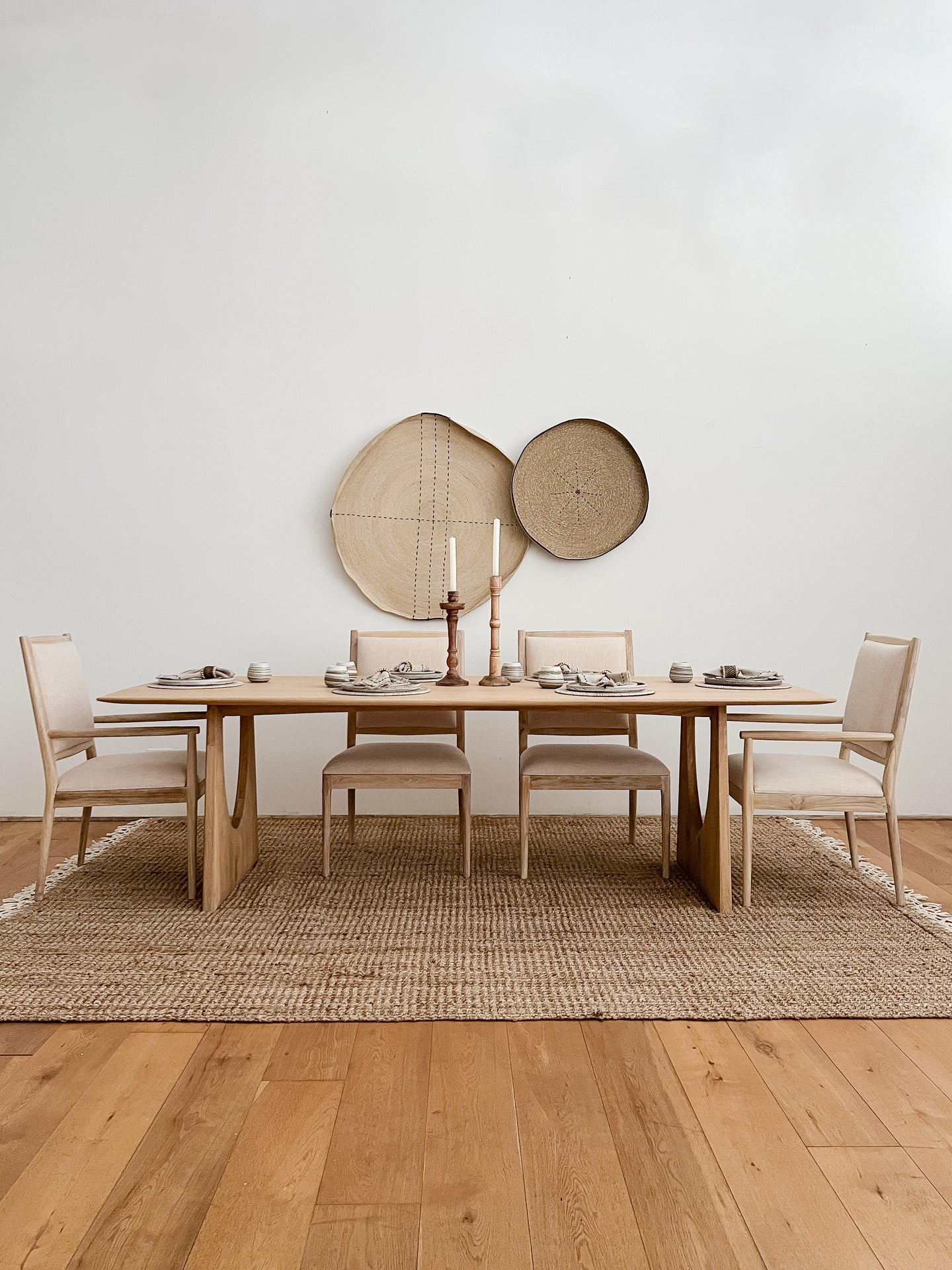 Confeccionada con materiales recuperados, esta alfombra presenta varios tonos de blancos, que contrastan perfecto con el yute tejido.