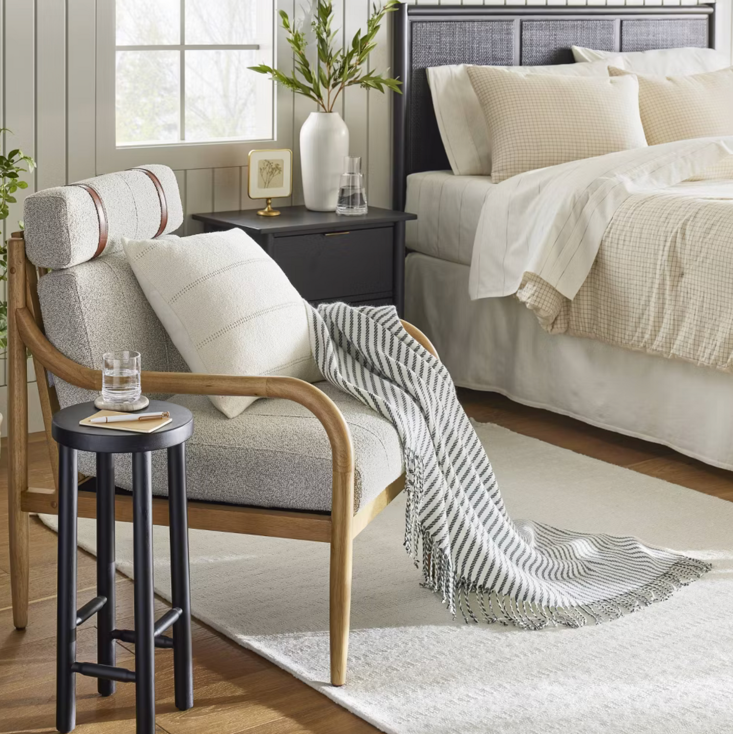Un elegante almohadón blanco confeccionado con tela de alta calidad, que presenta un diseño minimalista y sofisticado.