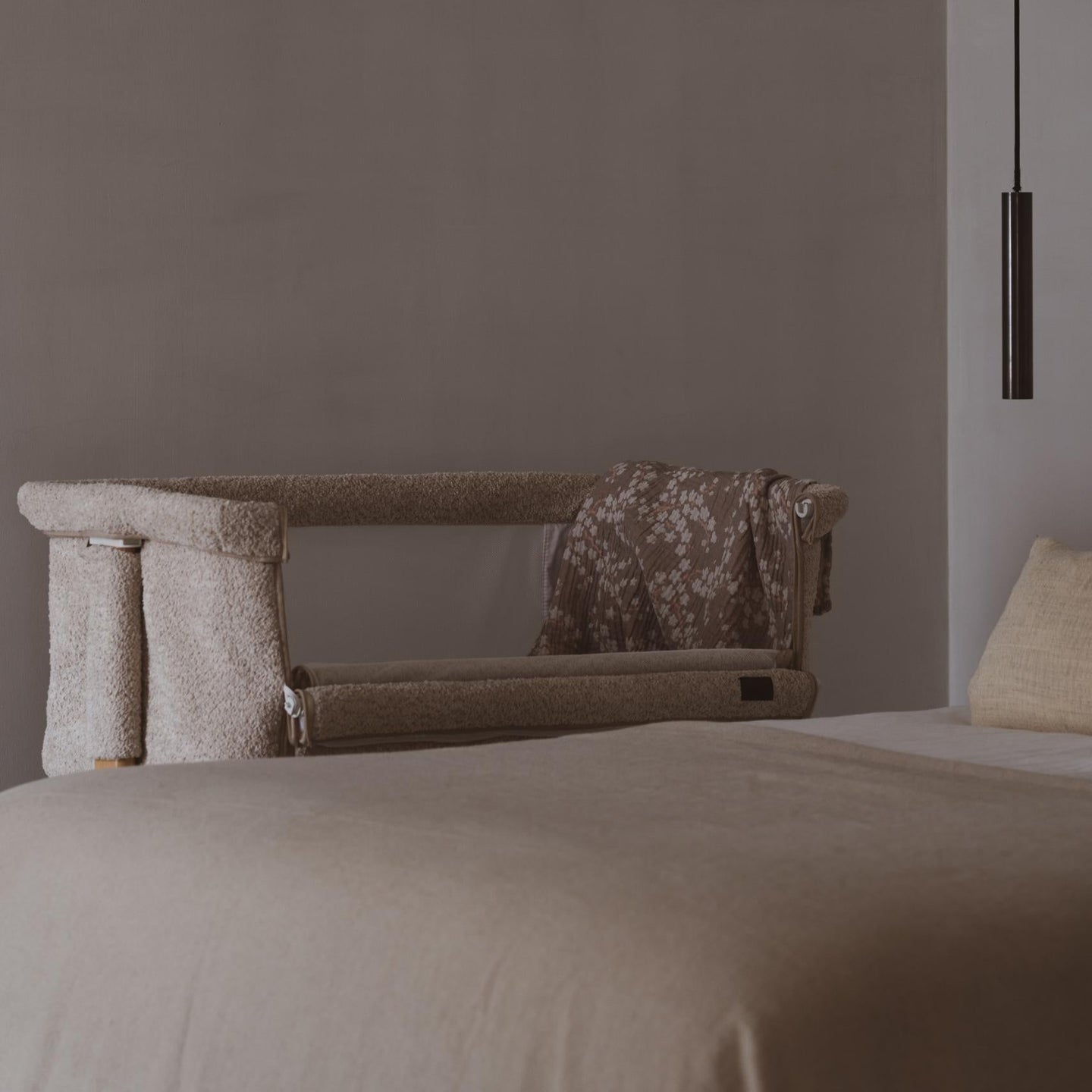 Un compañero indispensable durante los primeros meses con tu bebé. Esta cuna está diseñada para colocarse junto a tu cama, con un lateral abierto para facilitar la alimentación y el confort. Tu pequeño duerme seguro y cómodo, cerca de ti pero en su propio espacio familiar.