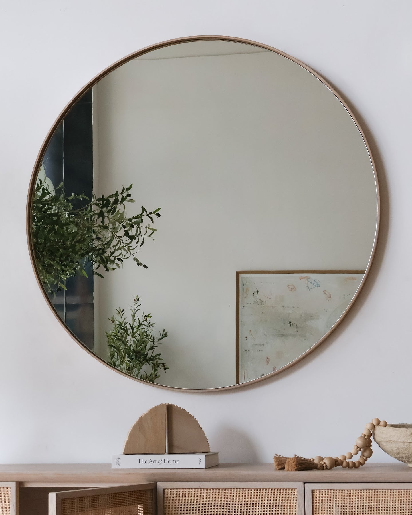 Con bordes de roble y una redondez perfecta, el espejo Layers se integra armoniosamente, al mismo tiempo que aporta un toque distintivo.
