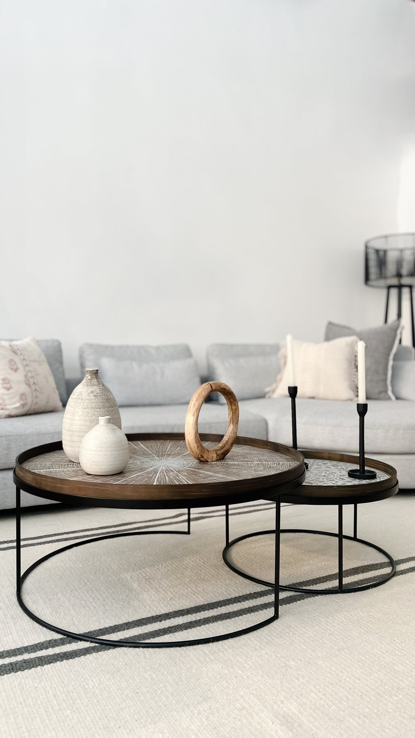 La mesa de bandeja redonda es una de nuestras piezas más versátiles: mientras cumple su función como mesa auxiliar, su capacidad de adoptar diferentes bandejas le permite mezclar o combinar varios colores y patrones, creando una pieza personal que es únicamente suya. Y, por supuesto, un juego equivale al doble de diversión y creatividad.