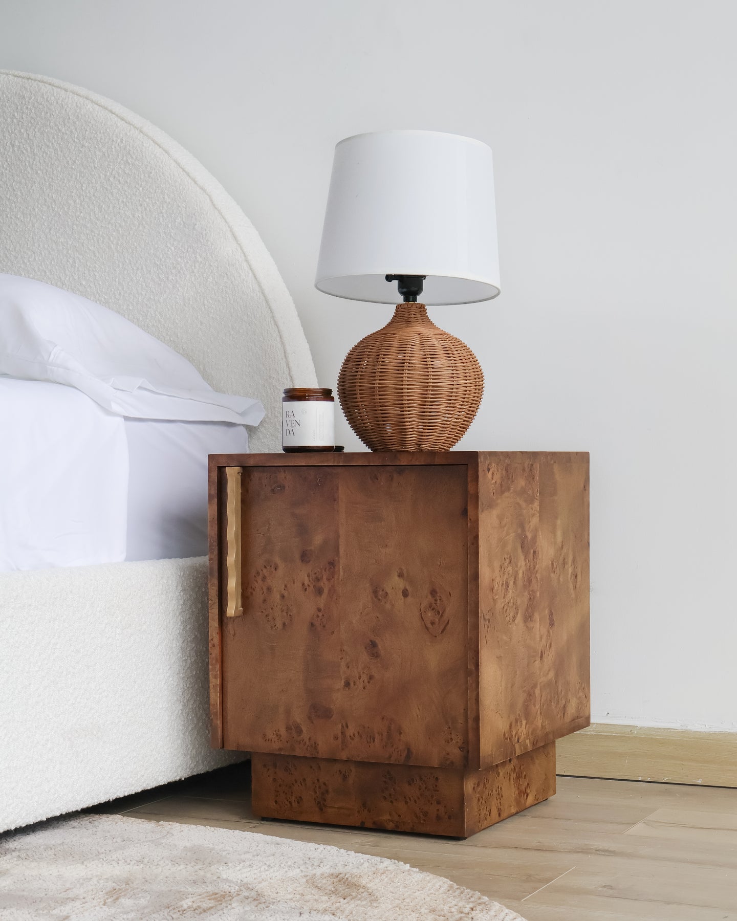 Con un acabado cuidadosamente diseñado, la mesa de noche Apia se adapta a cualquier dormitorio, brindando un espacio funcional para tus necesidades diarias y agregando un toque de elegancia. Ideal para colocar una lámpara, libros o cualquier accesorio que desees tener cerca mientras duermes.