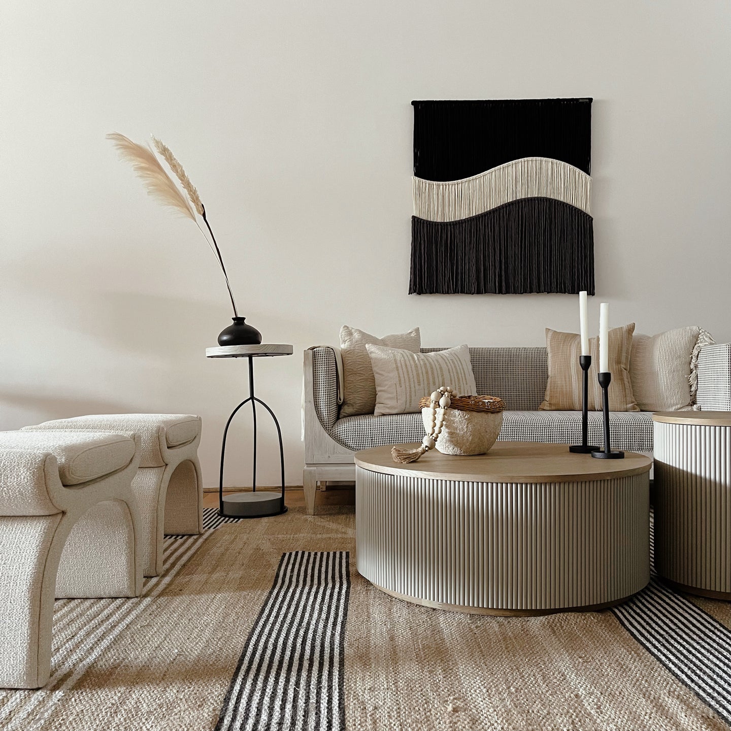 Nuestra mesa decorativa Bilbao crea un contraste convincente con su construcción de materiales mixtos. Una base de concreto bellamente diseñada sostiene una extensión con acabado de acero negro debajo de la mesa de pino suave y detallada.