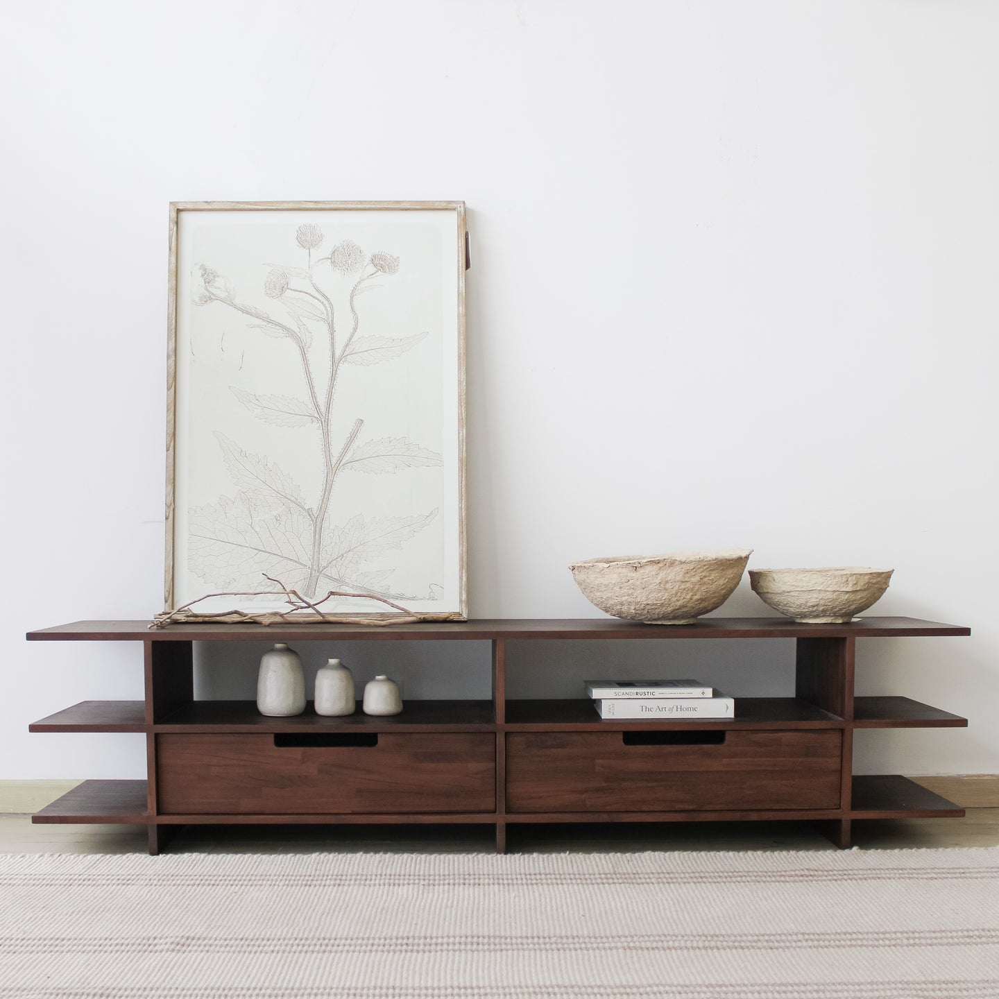 El mueble de tv Wagoto está hecho de teca marrón, conocido por su durabilidad y atractivo natural. Este mueble se adapta a diversas decoraciones. Incluye múltiples opciones de almacenamiento, como estantes abiertos y cajones, perfectos para dispositivos electrónicos y accesorios. Su acabado pulido realza la belleza de la madera y facilita su limpieza. El "Wagoto" combina funcionalidad y estilo, aportando una elegancia cálida a cualquier sala de estar.