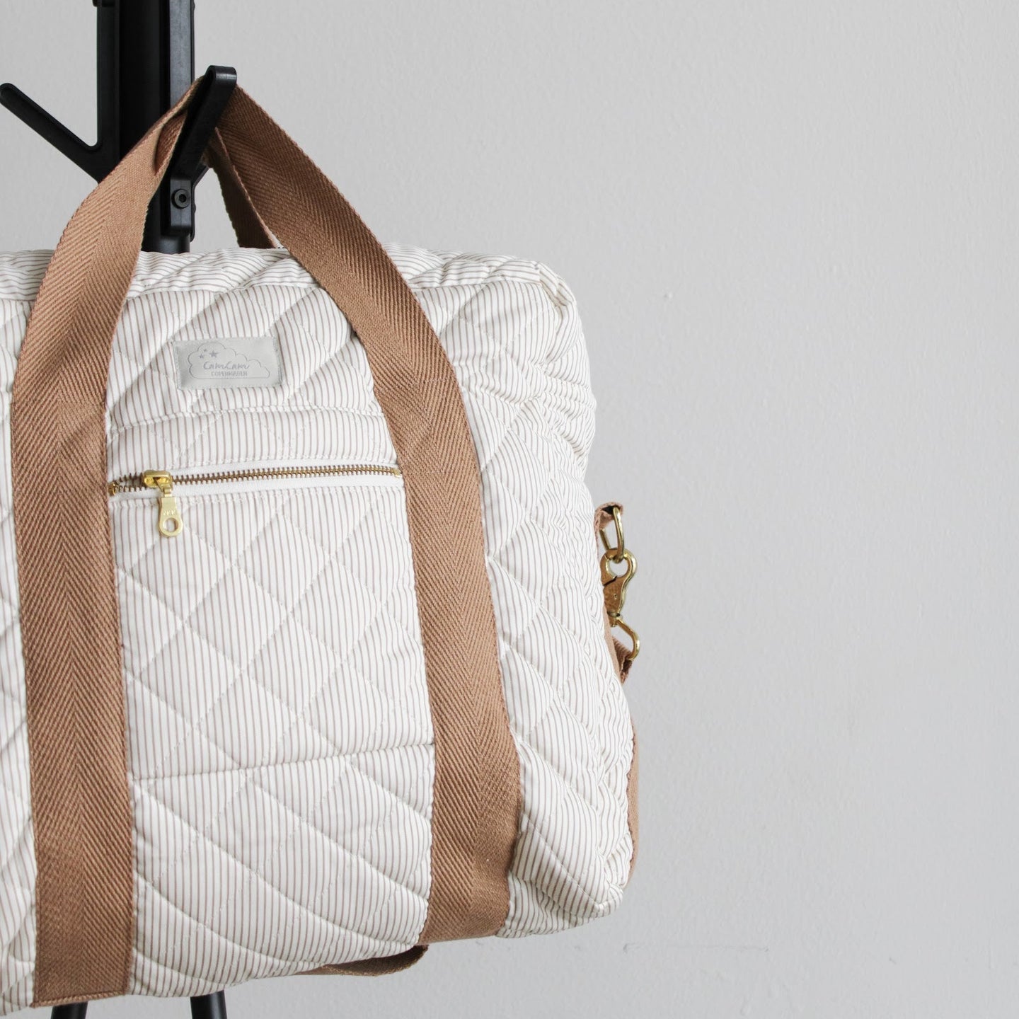 Este bolso cambiador con un elegante acolchado y revestimiento repelente al agua, tanto en el exterior como en el interior para una mayor protección y durabilidad. El bolso tiene correas resistentes, una correa ajustable para el hombro y dos pequeñas correas de asa para que puedas sujetarlo al asa del cochecito o la carriola.
