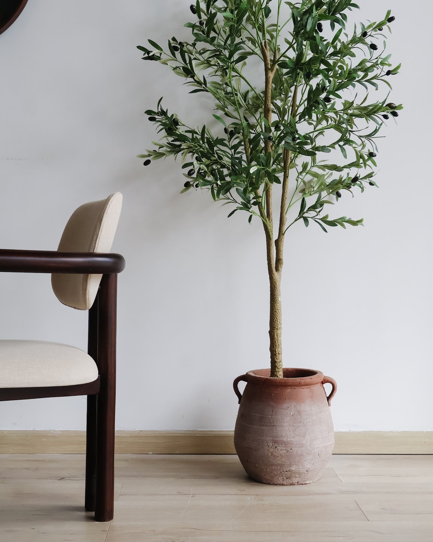 Un pote de terracota como maceta tiene un acabado rústico y cálido, con su característico color naranja o marrón rojizo. Es poroso, lo que permite una buena transpiración de las raíces de las plantas, y su diseño sencillo pero elegante lo hace ideal para complementar tanto espacios interiores como exteriores, aportando un toque de autenticidad y naturalidad.