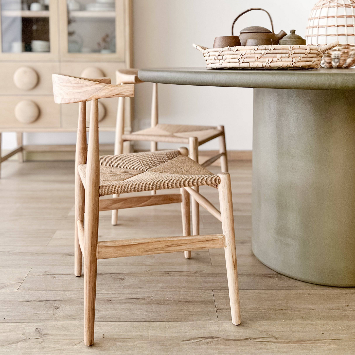 No solo es un diseño atemporan, la característica más destacada de esta silla es su asiento elaborado con cuerda de papel. La cuerda de papel se teje cuidadosamente en el marco de madera, creando un patrón y textura únicos. Esta cuerda de papel es duradera y resistente, lo que garantiza un asiento firme y cómodo.