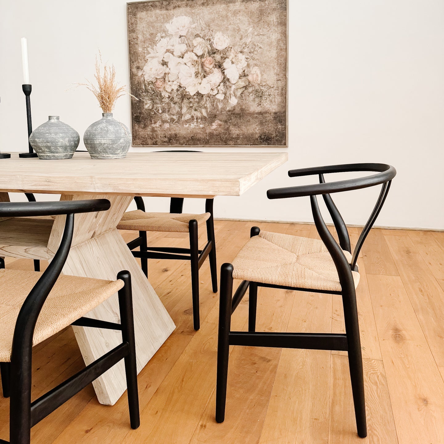 Esta no es una silla de comedor básica. Con un asiento de cuerda tejida y un respaldo curvo, la silla Hans agrega una sensación de lujo a los comedores tradicionales.