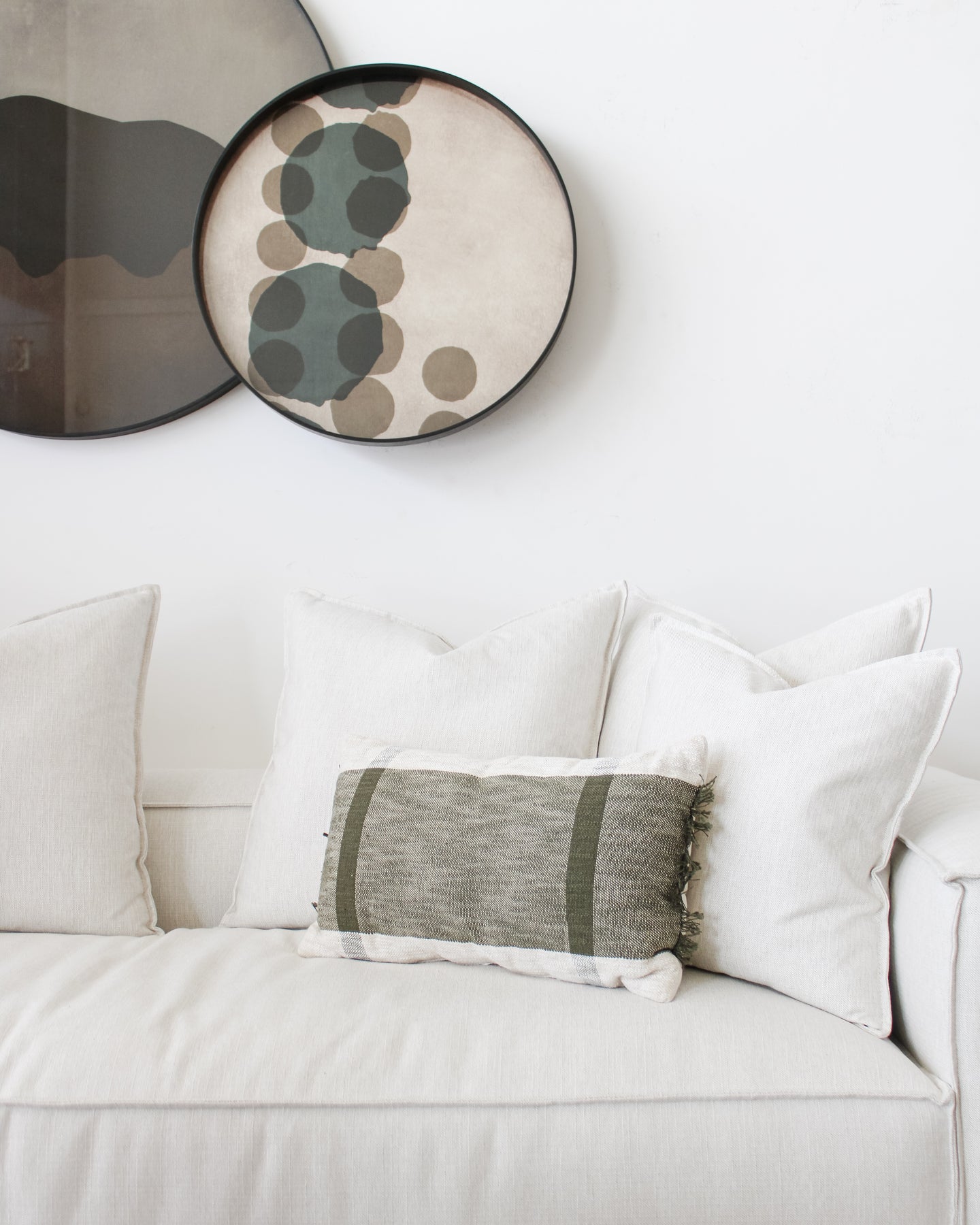 Con una estructura hecha de madera secada al horno para mayor durabilidad y cojines envueltos en plumas para una comodidad lujosa, creamos este sofá lleno de forma y función. Elije entre nuestros dos colores de tela, verde o blanco, la opción que mejor complemente tu espacio.
