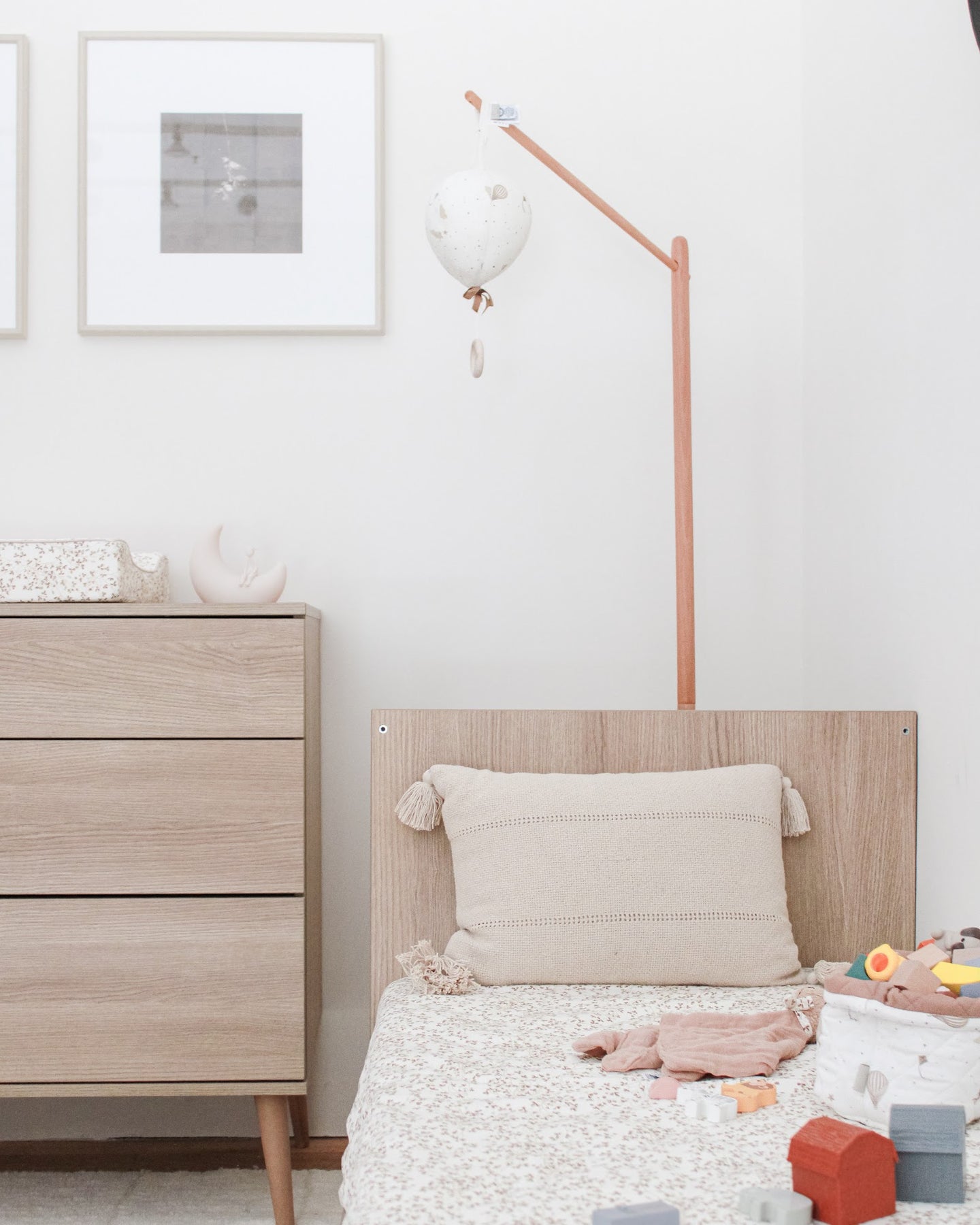 Con el soporte de madera - Móvil, añade un toque de magia y maravilla al mundo de tu pequeño. Este encantador soporte de madera facilita la fijación de un móvil (se vende por separado), llevando a su hijo a un viaje lleno de sueños e imaginación.
