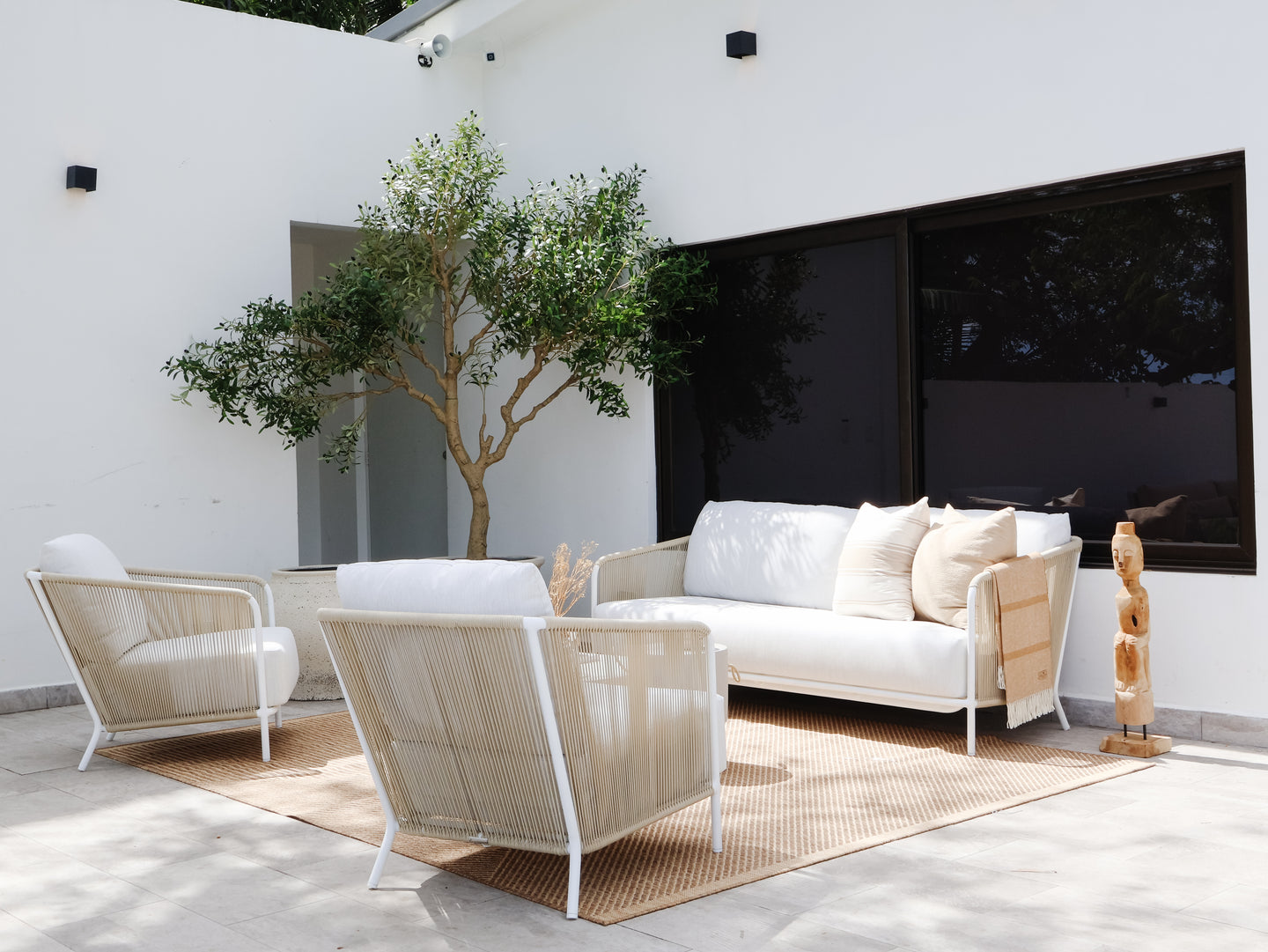 La Butaca Singapur destaca por su diseño contemporáneo con brazos de fibras tejidas y un tapizado ligero que aporta textura y serenidad.