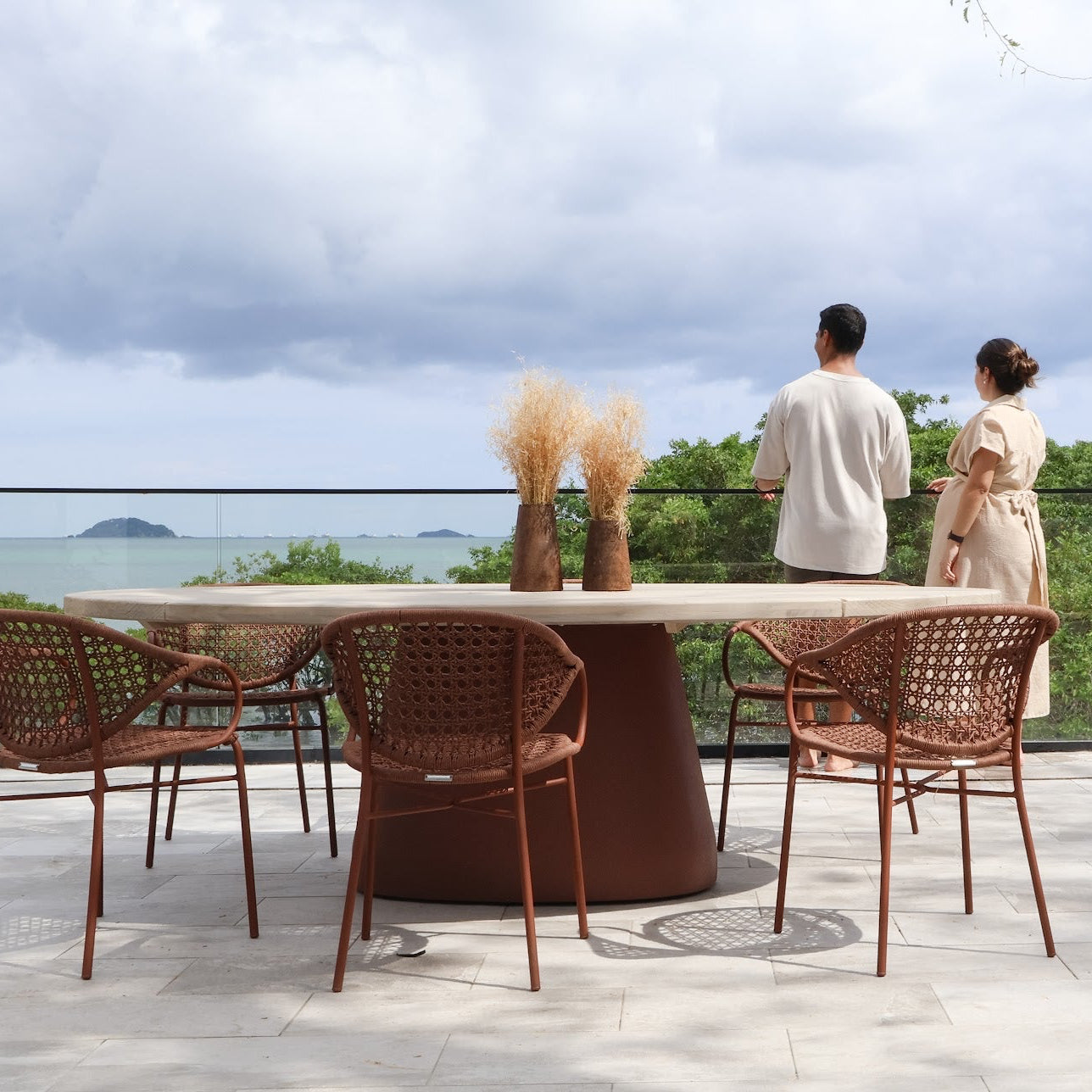 La mesa de comedor Kuwait para exterior ofrece resistencia, estilo y funcionalidad para embellecer tus espacios al aire libre.