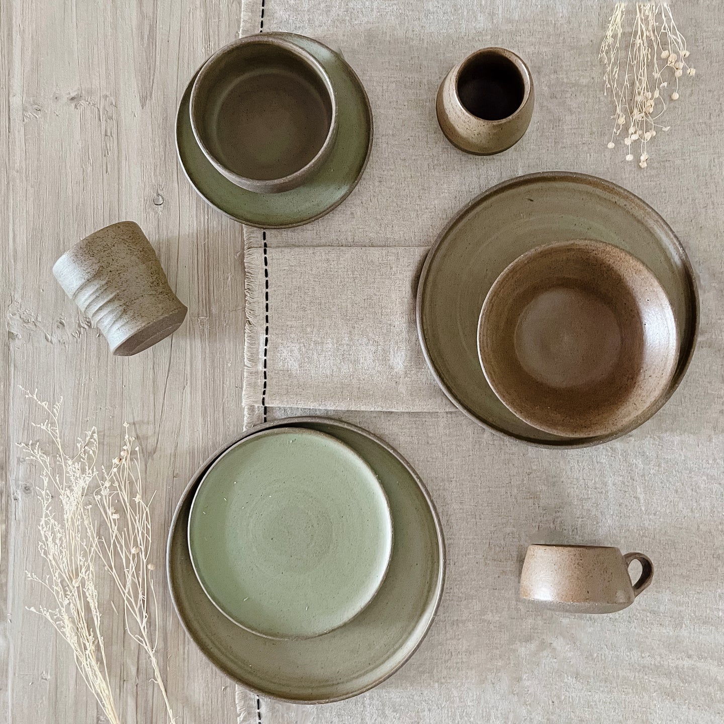 Cada pieza está cuidadosamente elaborada con cerámica de gres, lo que le confiere durabilidad y un aspecto único. El acabado suave y brillante de la cerámica de gres agrega un toque de elegancia a la vajilla. Nuestra vajillas son hechas una a una en el torno de alfarera, ninguna pieza es igual a la anterior, cada una es hecha especialmente para ti. Calidad de gres (1250°C). Las pequeñas diferencias de cada pieza son el resultado del proceso manual el cual no afecta o compromete su calidad, no se consideran defectos.