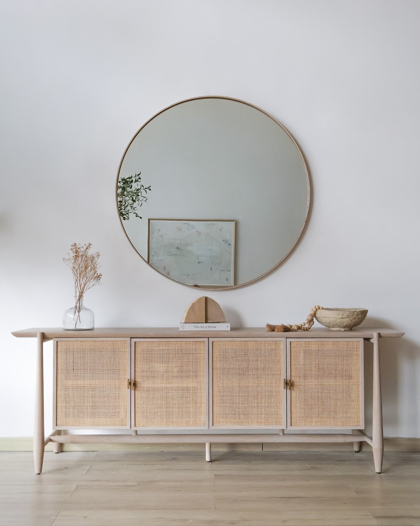 La textura del ratán contrasta de manera armoniosa con el roble, creando una pieza que equilibra calidez y elegancia. Con amplio espacio de almacenamiento y un estilo fresco y acogedor, este vajillero es ideal para comedores y salas de estar, perfecto para quienes buscan funcionalidad y una estética refinada que realce cualquier ambiente.
